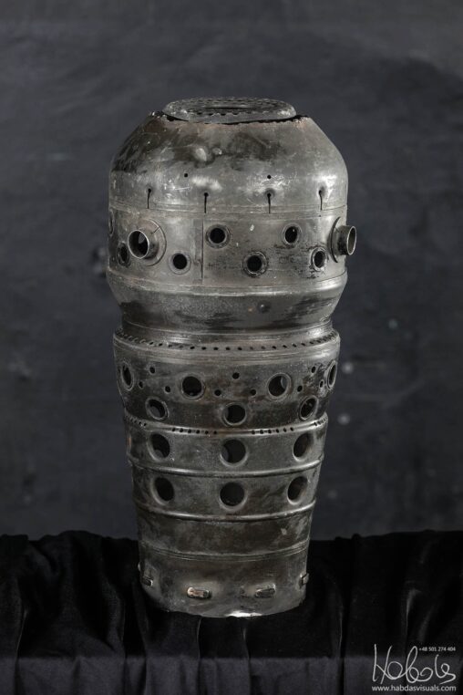 Combustion chamber (komora spalania) z silnika RD-45 (stosowanego w MiG-15), czyli kopii silnika Rolls Royce Nene. Jeśli oglądaliście Gwiezdne Wojny i rozpoznajecie roboty IG-11 i IG-88, to „głowy”…