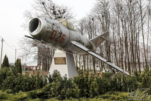 To jeden z trzech zachowanych w Polsce oryginalnych samolotów MiG-17PF o numerze fabrycznym 58310949 i numerze bocznym (taktycznym) 949. Samolot ustawiony jest na postumencie przy skrzyżowaniu al. Jana…