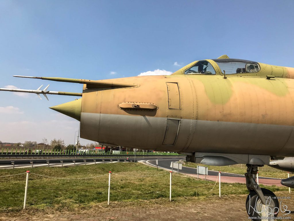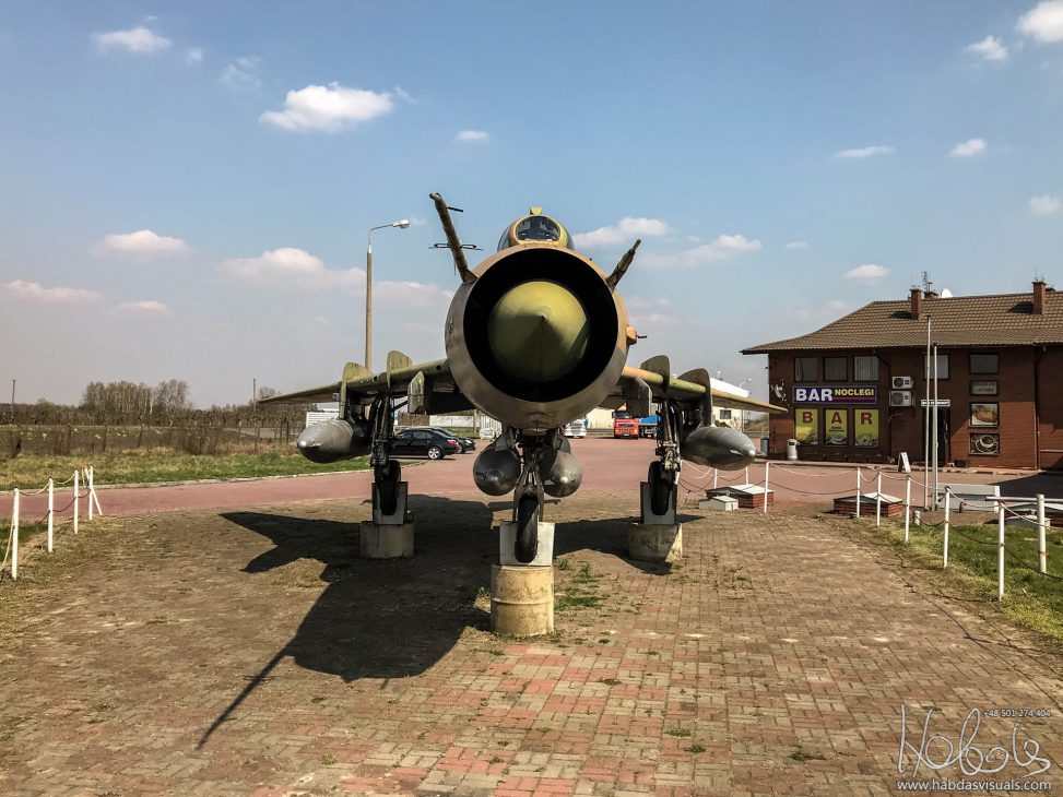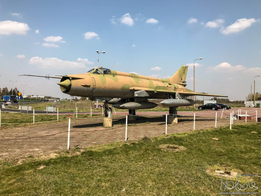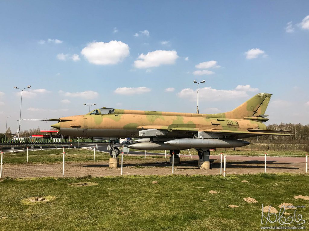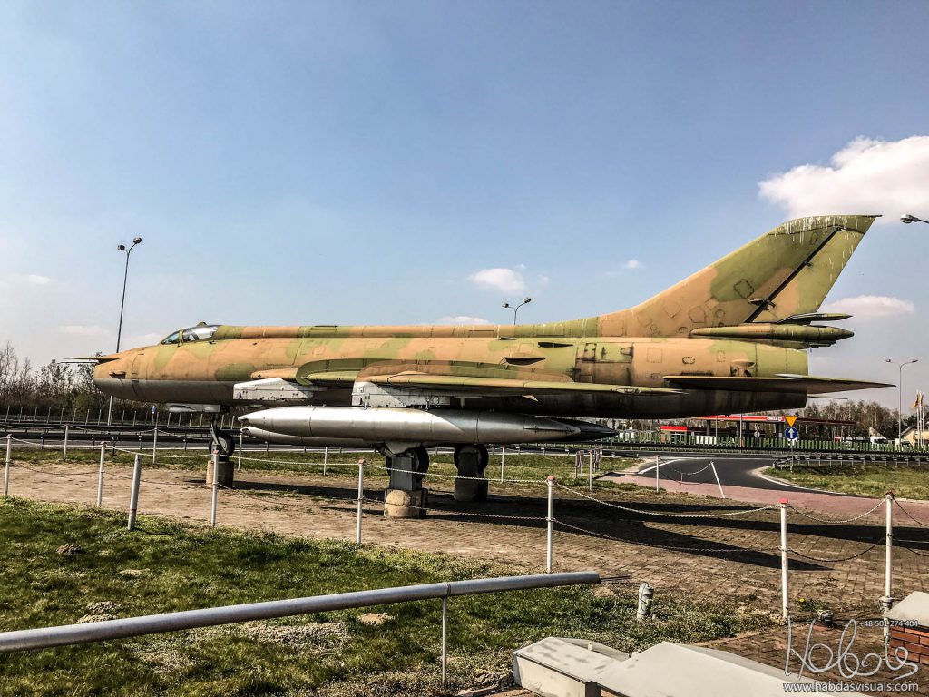Broniszew, gmina Promna. MOP Józefów Wschód. Samolot Sukhoi Su-20R Fitter C (reg 6256) przy trasie S7, jako reklama pobliskiego baru-motelu „Samolot”