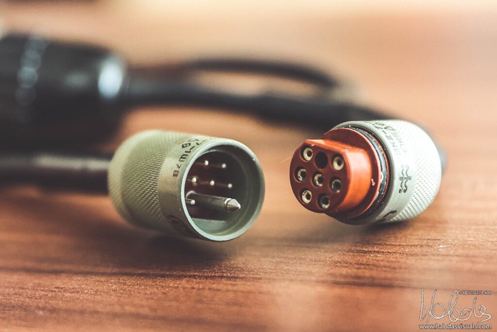 „Do samolotu”(a dokładniej do złącz ORK fotela KM-1) hełm podłączany jest wtykami jak na zdjęciu poniżej.