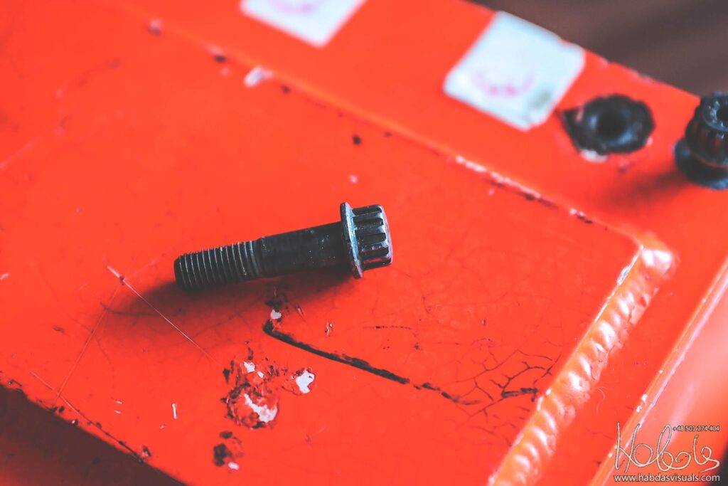Napis po francusku „Rejestrator lotu nie otwierać”, ta sama treść po angielsku znajduje się z drugiej strony, srebrny cylinder skrajnie po prawej to urządzenie naprowadzające (fot: domena publiczna)