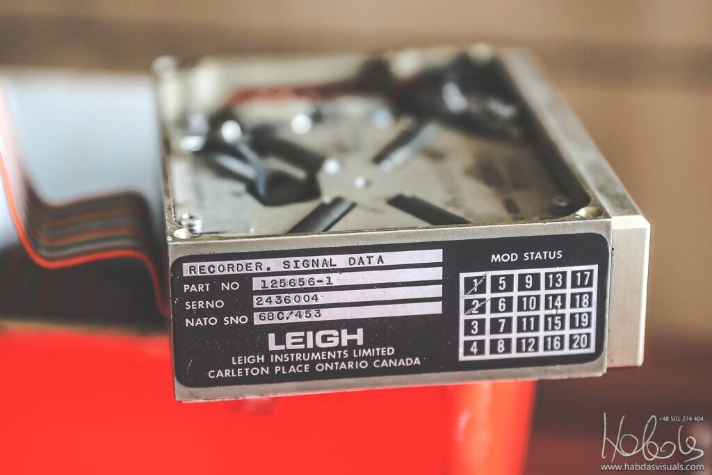 Rejestrator parametrów lotu (Flight Data Recorder) z brytyjskiego samolotu myśliwskiego pionowego startu i lądowania BAe Harrier.
