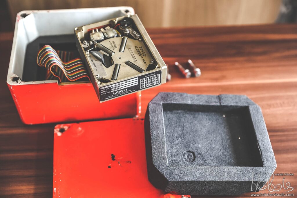 Po odkręceniu czterech śrub i zdjęciu pokrywy, widzimy wypełnienie z lekkiego tworzywa, zapewne mające chronić wnętrze przed wibracjami i temperaturą.