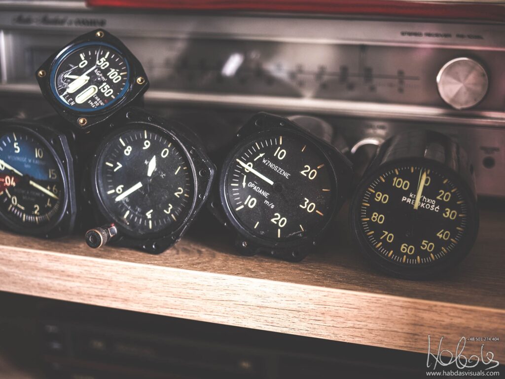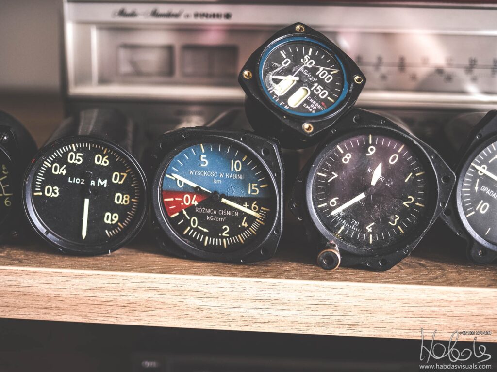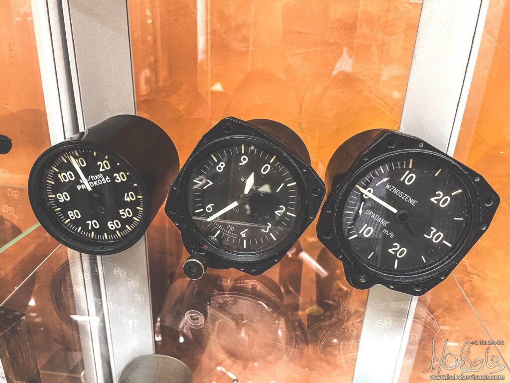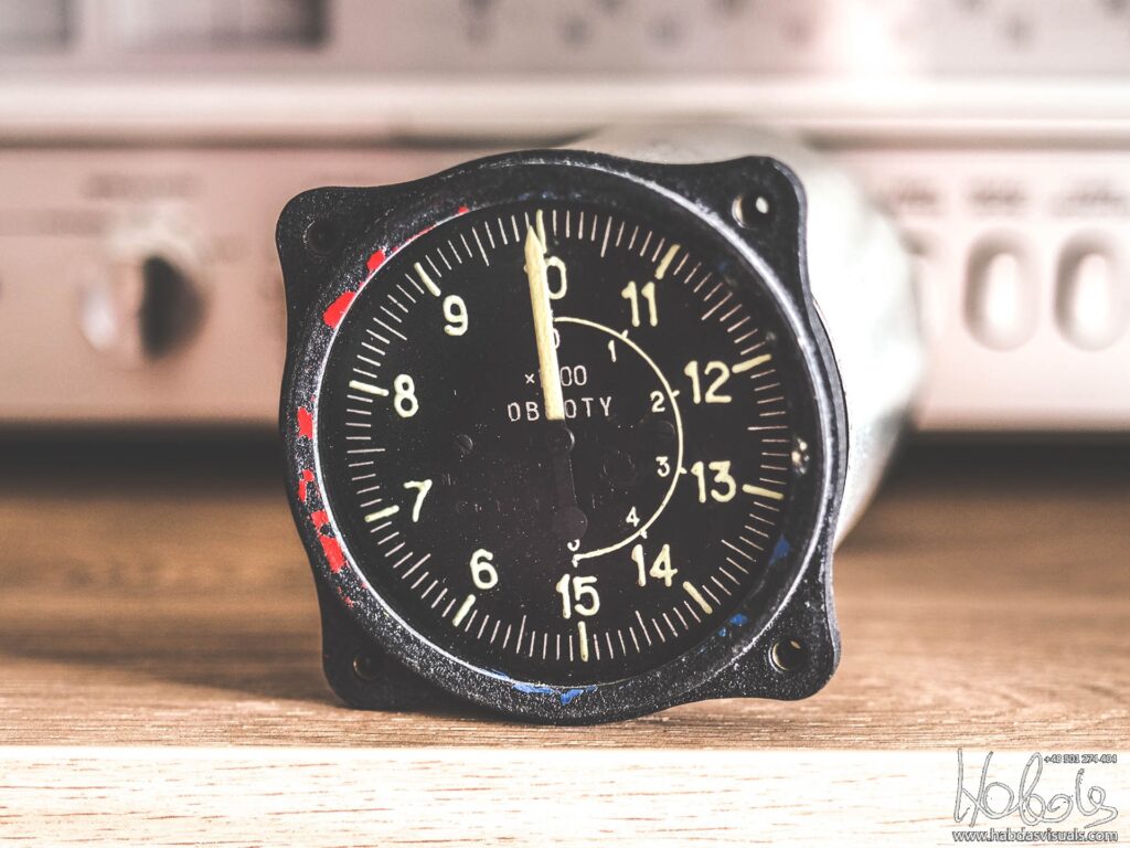 Zestaw zakupiony na Marketplace, dlatego prezentuję jako komplet. Wskaźniki głównie produkcji PZL. Niestety jeden (wskaźnik tlenu IK-18) podczas transportu uległ uszkodzeniu, miałem już wcześniej inną sztukę w doskonałym stanie. Po tym, jakie zegary są w komplecie podejrzewam, że pochodzą z tablicy przyrządów samolotu TS-11 Iskra. Teraz, posiadając taki zestaw, wydaje mi się, że potrzebuję tablicy z Iskry, w której mógłbym je umieścić… (więc jeśli ktoś posiada to proszę o kontakt).