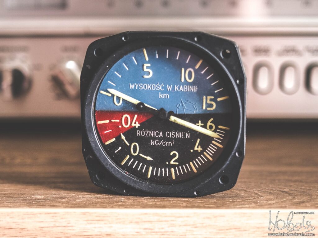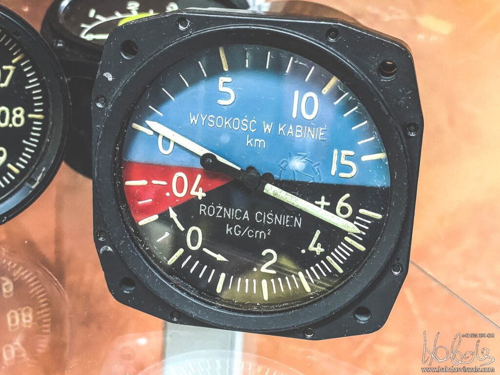 Wskaźnik PZL Wysokościomierz WD-12U. Przyrząd był używany w różnych samolotach z kabinami ciśnieniowymi np. MiG-21, MiG-17, MiG-15, TS-11 Iskra.