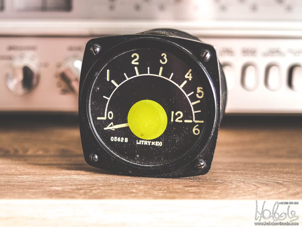 Paliwomierz lotniczy. Wskaźnik z 1988 r. (oznaczenia widoczne są z tyłu przyrządu)
