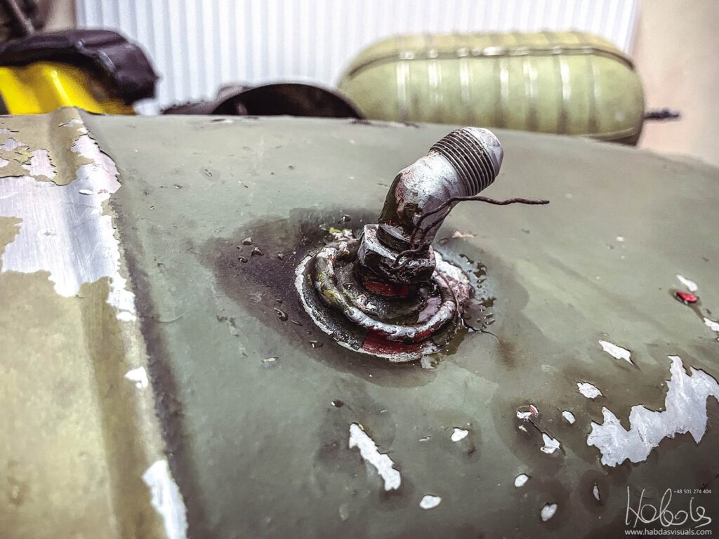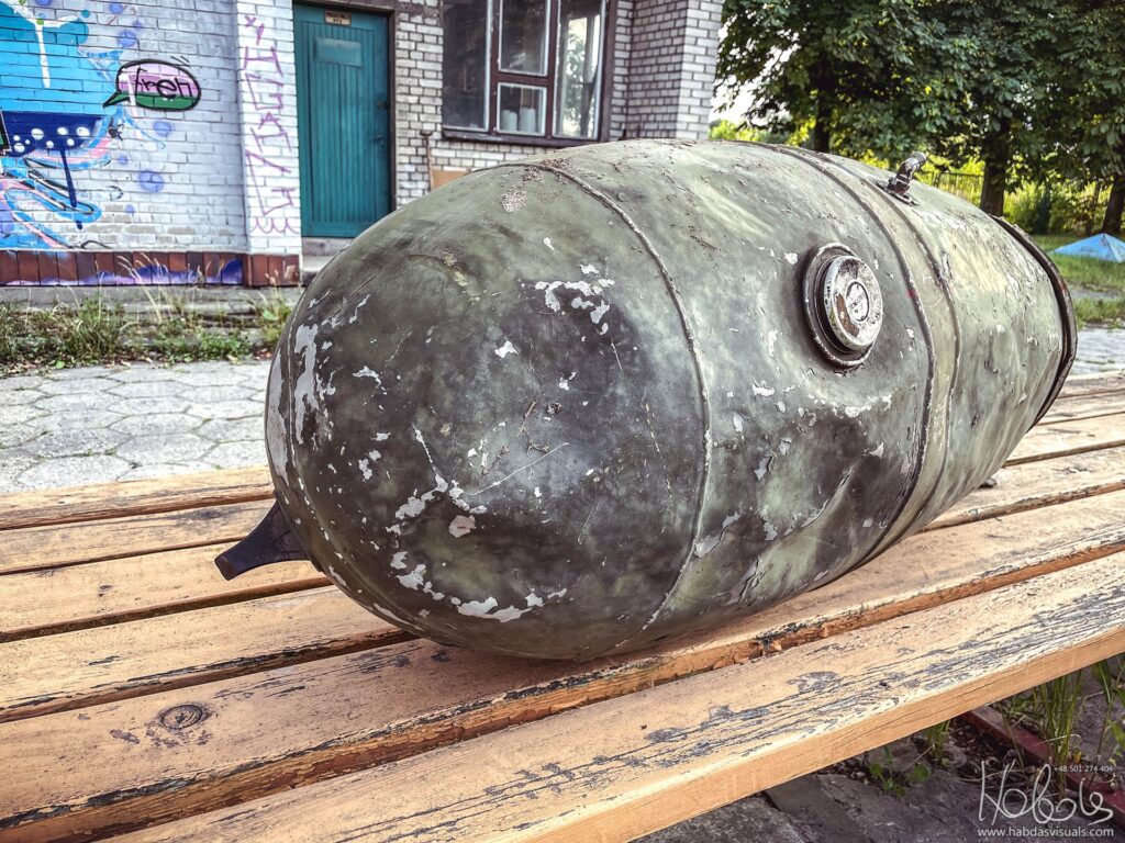 Dodatkowy zbiornik, montowany na zewnątrz po lewej stronie kabiny SM-1. Gdy go kupiłem, w środku nadal znajdował się litr czy dwa nafty lotniczej. Zakupiony w okolicy Nowego Miasta nad Pilicą, gdzie stacjonowały te śmigłowce.