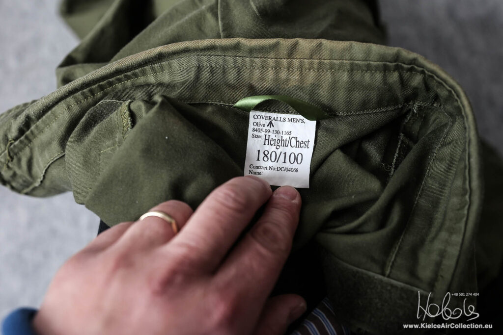 Oryginalny kombinezon roboczy armii brytyjskiej. Oficjalna nazwa: Kombinezon męski oliwkowy. Kombinezon przeznaczony jest do stosowania przez techników i mechaników podczas obsługi, konserwacji i naprawy układów i urządzeń mechanicznych. Przeznaczony do noszenia w umiarkowanej pogodzie przez członków personelu cywilnego armii brytyjskiej i sił zbrojnych. Wszedł do służby 25 kwietnia 1991 r. Kombinezon posiada szereg cech – zamiast tradycyjnego zamka błyskawicznego, kombinezon zapinany jest na długi rzep, który zapinany jest na pasek z rzepem, w kombinezonie nie ma elementów metalowych. Kombinezon wyposażony jest w obszerną kieszeń na lewym udzie z klapką zapinaną na rzep. Po bokach kombinezonu znajdują się fałszywe kieszenie zapinane na rzepy umożliwiające dostęp do wewnętrznej warstwy odzieży. Po lewej stronie klatki piersiowej znajduje się kieszeń na przybory do pisania. Kombinezon posiada tylną regulację w pasie za pomocą zapięć na rzepy. Regulacja dołu nogawek i rękawów odbywa się za pomocą rzepów. Na ramionach znajdują się pagony umożliwiające dopięcie pasów naramiennych. Kolor: oliwkowy. Materiał: 67% poliester 33% bawełna (twill).