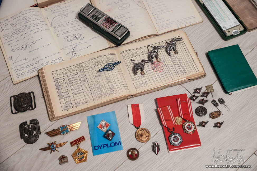Co więcej, w końcówce listopada 2023, Pilot Jacek zdecydował o przekazaniu wielu pamiątek ze swojej służby właśnie Kielce Air Collection (i tu namawiam do naśladowania:), i tak, w Bazie Zbożowej już niedługo zobaczyć będzie można osobiste pamiątki, w tym kombinezon pilota, komplet Gap Lotniczych (3, 2 i 1 klasy), wspomniany tu wcześniej Osobisty Dziennik Lotów, odręczne notatki ze szkolenia, suwaki nawigacyjne czy manetkę przepustnicy z samolotu MiG-21SPS, i wiele innych. Najbliższe dni to opracowywanie każdego z przedmiotów.