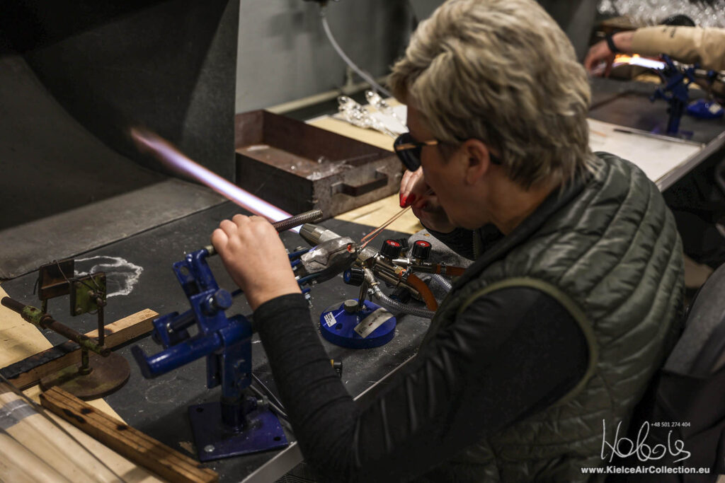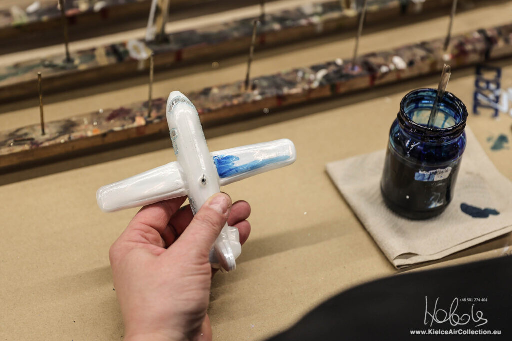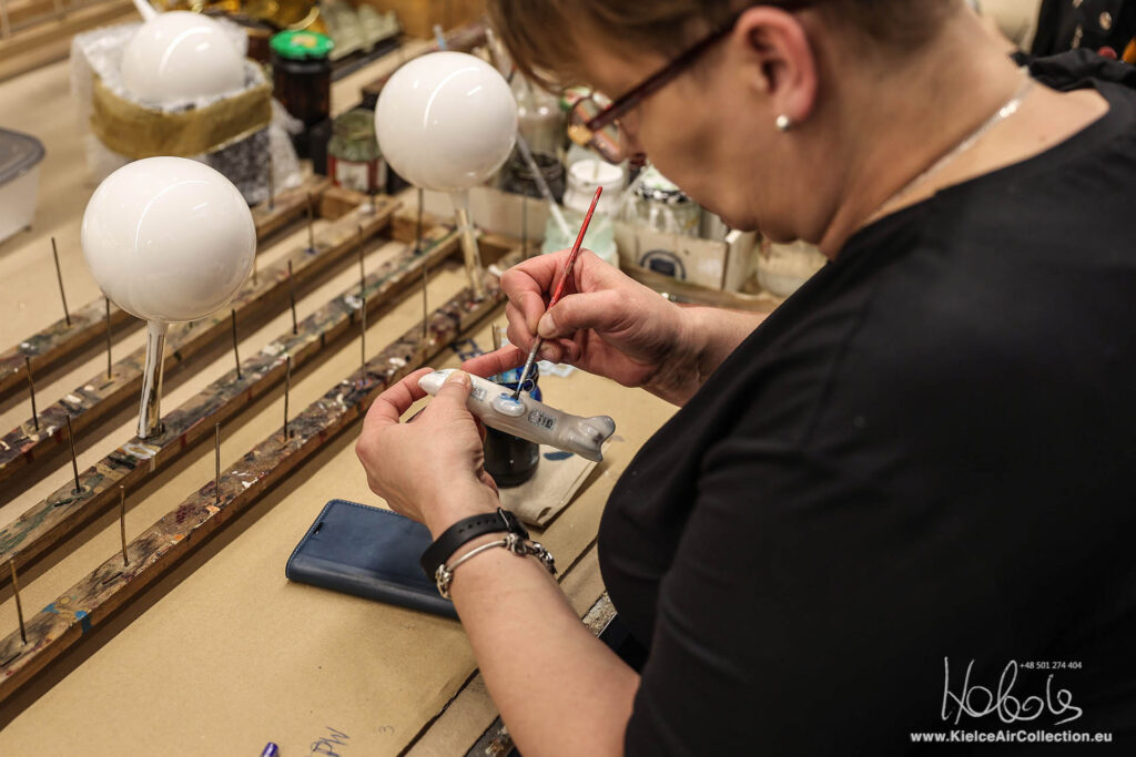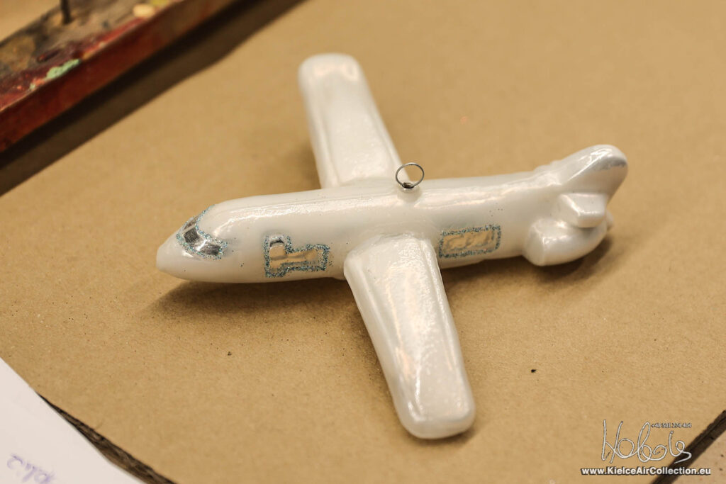 Pośród bogactwa wzorów, w tym roku zadebiutował nowy, o którym już rok temu rozmawiałem z p. Lucyną Gozdek (współwłaścicielką fabryki, pełniącą także funkcję dyrektora artystycznego). To właśnie samolot, i miałem tą radość, że pierwsza bombka samolot, która opuściła fabrykę – to samolot Kielce Air Collection!