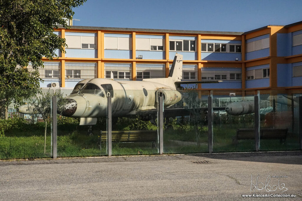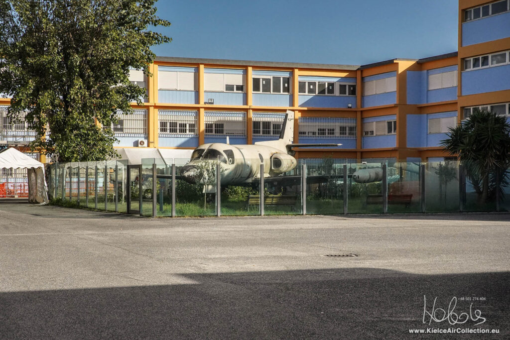 Okazuje się, że mimo iż w Ostii bywam systematycznie, dopiero w 2023 roku dowiedziałem się, że 200m od miejsca gdzie się zatrzymuję, ustawiony jest samolot Piaggio-Douglas PD.808. Znajduje się na dziedzińcu Istituto Tecnico Industriale „Michael Faraday” przy Via Capo Sperone. Instytut jest ogrodzony, więc dostęp do niego jest ograniczony. W wakacje 2023 nie udało mi się tam dostać (sierpień to czas urlopów). Udało się za to w grudniu 2023, i prezentuję tu zdjęcia wtedy właśnie wykonane.