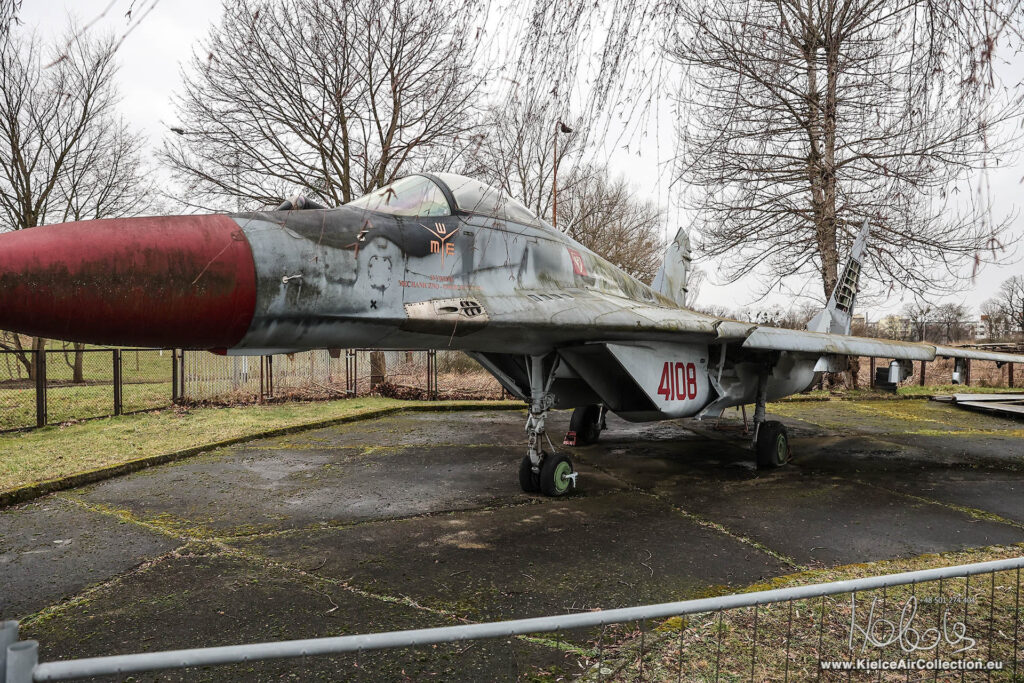 MiG-29, który trafił do Wrocławia, latał kiedyś w siłach NRD (jest to zmodernizowany w RFN MiG-29 (9.12A)). Został odkupiony w 2004 roku przez MON od Luftwaffe razem z 22 innymi maszynami, ale ze względu na duże zużycie nie trafił do służby. Płatowiec nie przeszedł weryfikacji w WZL-2, gdzie wykryto pęknięcia w strukturze nośnej na skutek intensywnej eksploatacji. (Kilka innych maszyn, z podobnymi problemami, trafiło do WAT, Dęblina, Państwowej Wyższej Szkoły Zawodowej w Chełmie – z informacji na forum modelwork.pl)