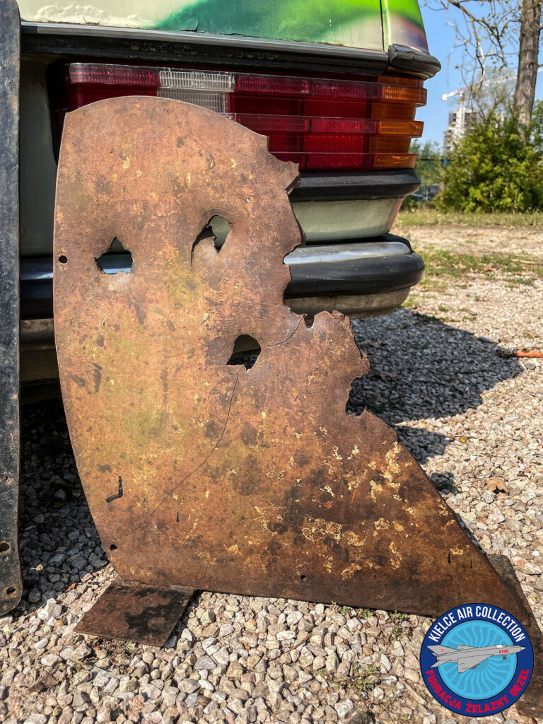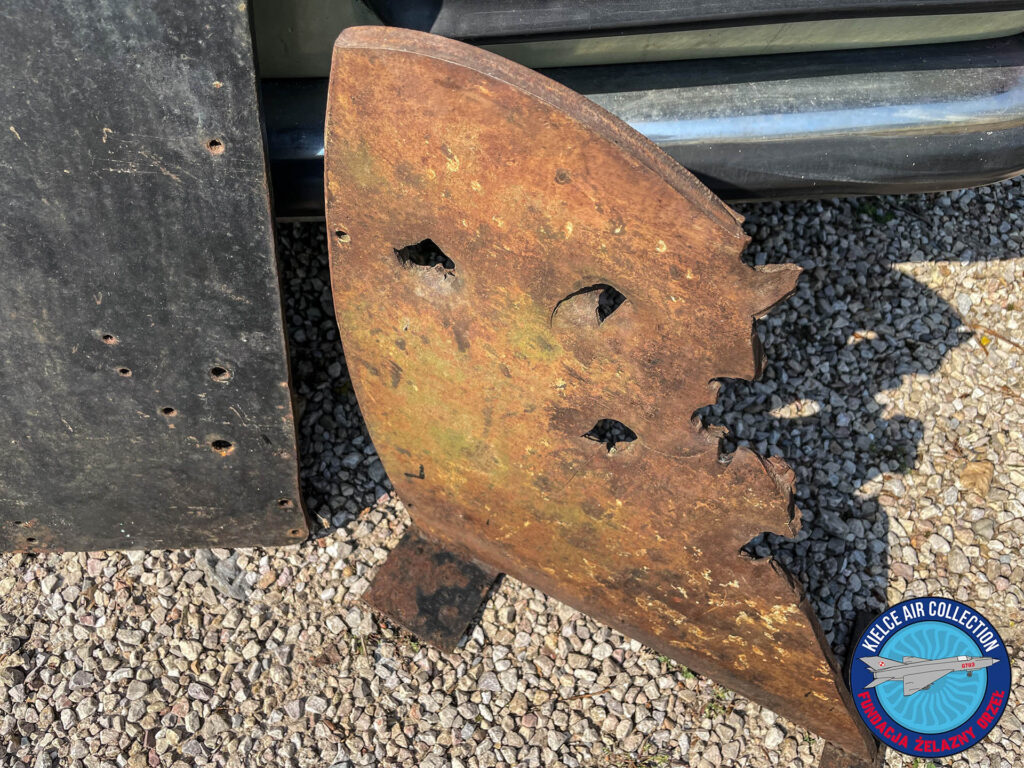 Na zdjęciach widać też fragment drugiej takiej płyty, do której strzelano na poligonie (niestety nie wiem jaką amunicją). Widać po przestrzelinach, że pilot był chroniony w ograniczonym zakresie.
