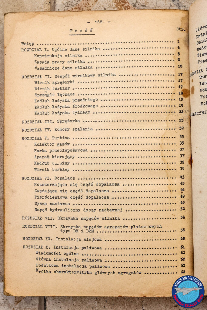 Opis zawiera szczegółowy opis silnika, schematy, rysunki techniczne i charakterystyki (spis treści zamieściłem poniżej). Opis przywiozłem z Białej Podlaskiej, z wieloma lotniczymi przedmiotami, o których już pisałem, lub będę pisał w najbliższych dniach.