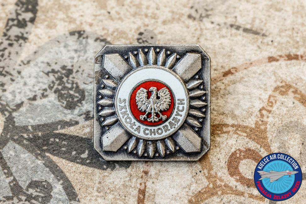 Odznaka pamiątkowa absolwentów Szkoły Chorążych, tzw. „absolwentka” (orzeł jeszcze bez korony). Wymiary 38 x 38 mm.