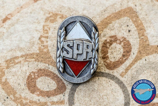 Odznaka SPR ( Szkoła Podchorążych Rezerwy – LWP). Mocowanie na słupek i nakrętkę. Eksponat jest darem od Mjr pil. Jerzego Wawrzyniaka. Serdecznie dziękuję.