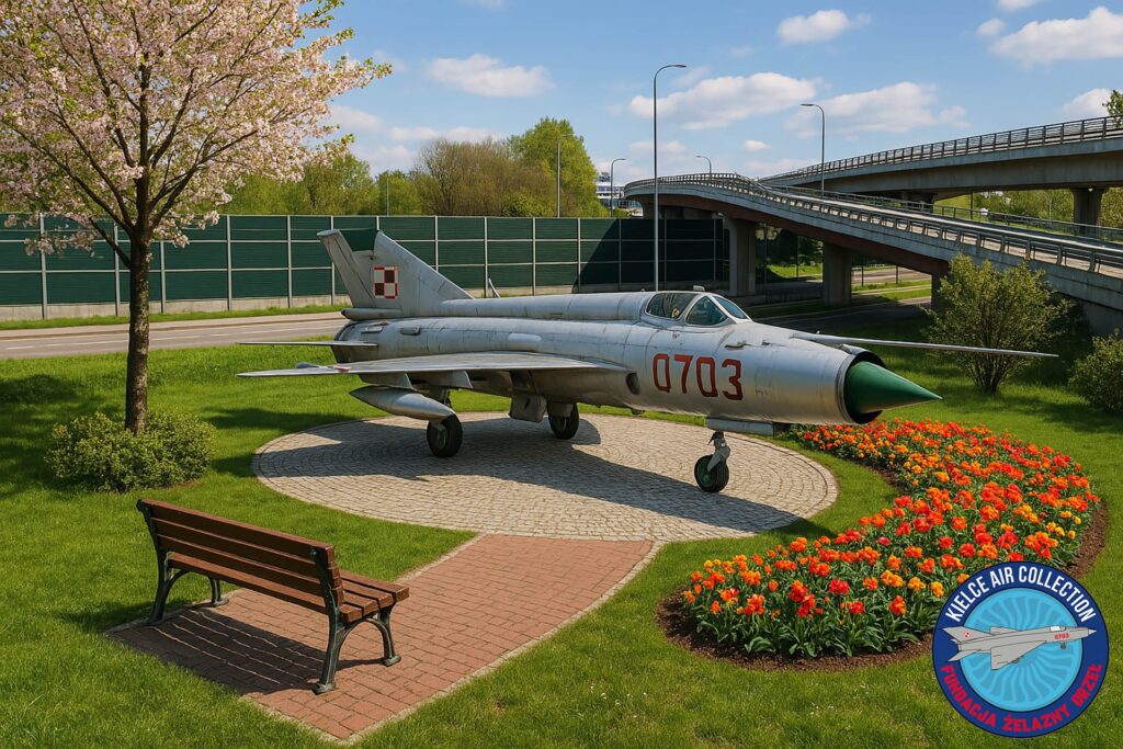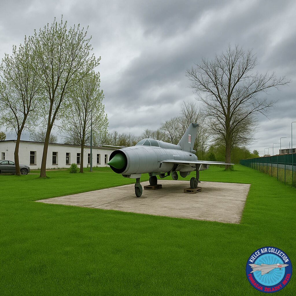 Na zewnątrz, w północnej części terenu Bazy Zbożowej ustawiony na stojance jest MiG-21PF (od Aidpol Fundacji), I choć wydawać się może, że od października 2024 roku, kiedy przybył do Kielc, nic wokół się nie dzieje, nic mylnego!. Przez ten czas teren wokół samolotu przeszedł dużą metamorfozę, usunąłem zarośla które „zdobyły” plac w ostatnim kilkunastoletnim okresie kiedy nie był używany (choć wiele jeszcze brakuje do tego by wyglądał tak jak bym chciał).