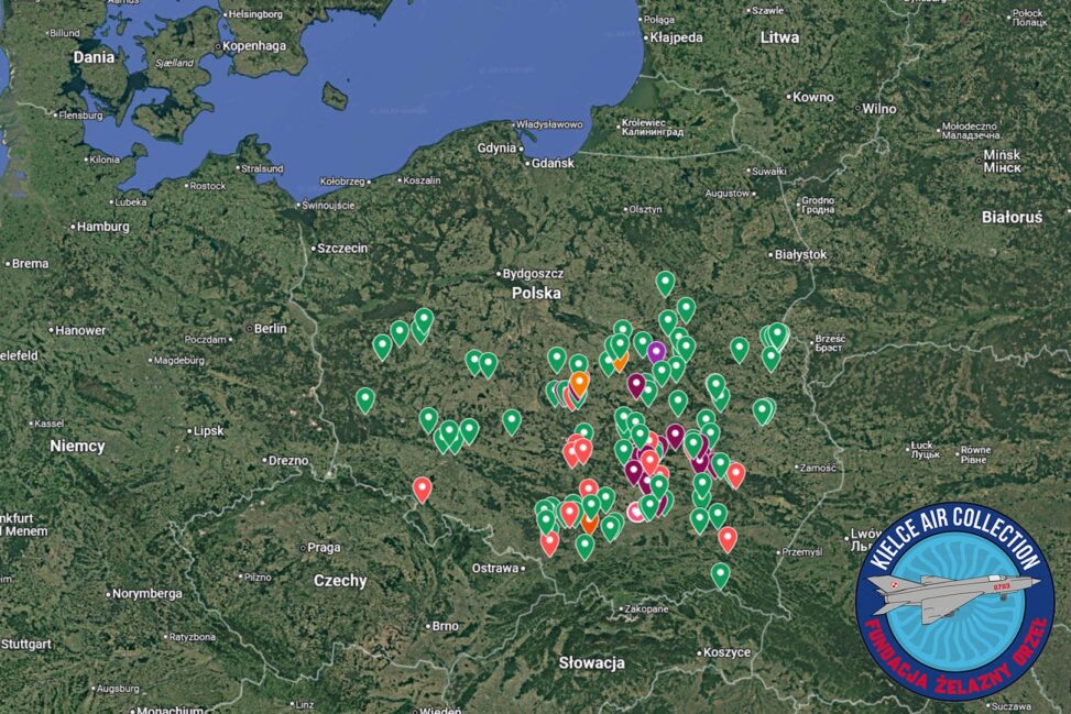 Mapa ma dwie kategorie, oznaczone są na niej miejsca w których już byłem i udało mi się je opisać na stronie, oraz te do których dotarłem, ale czekają na swoją kolej by znaleźć się na łamach Kielce Air Collection (ale możecie się spodziewać, że niedługo o nich napiszę). Zapraszam!