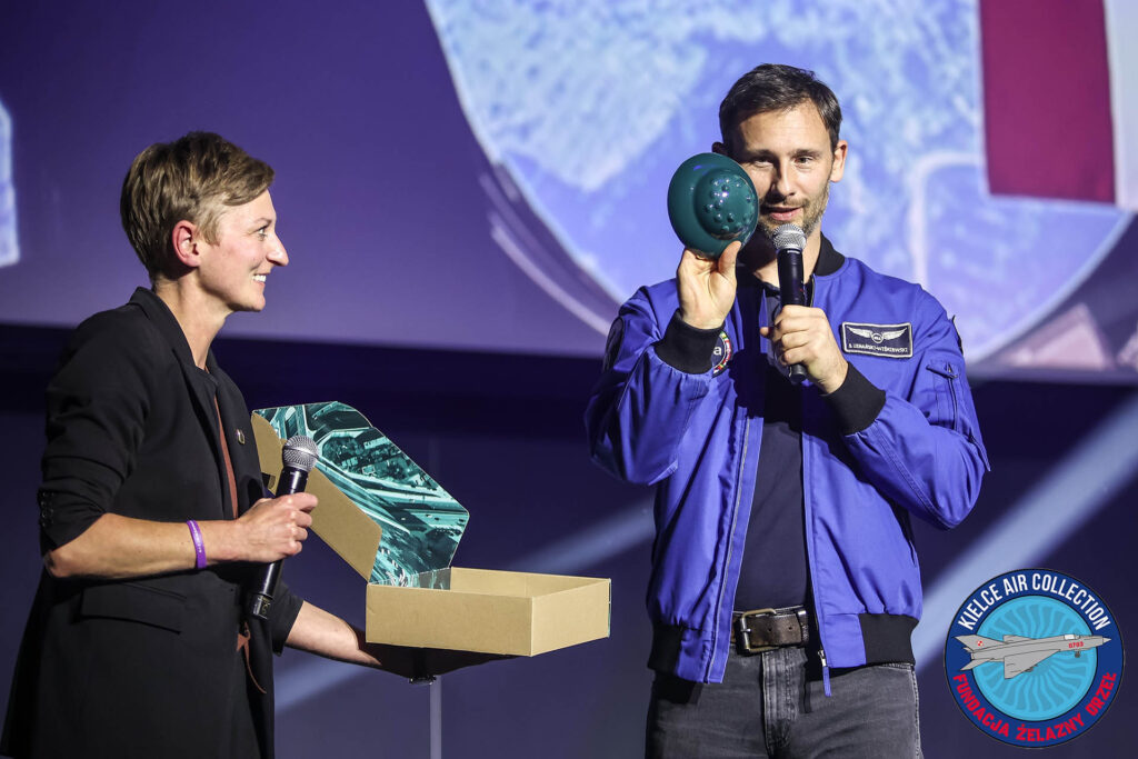 I choć spotkanie nie odbyło się na dVoRcu, symboliki kieleckiego UFO nie zabrakło na sali. Astronauta otrzymał w prezencie ceramiczną misę inspirowaną kształtem bryły kieleckiego dworca PKS. Autorką projektu jest Marta Dachowska, ceramiczka w Instytucie Dizajnu.