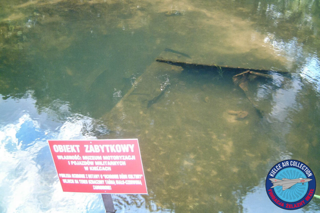 Jest rok 2003. Przed wakacjami pojawiły się informacje, że w rzece Czarna Nida w Bieleckich Młynach koło Kielc zatopiony jest czołg. Ba, nawet widać go było przy niskim stanie wody. Obiekt został oznaczony, w muł wbito tablicę informującą, że należy do Muzeum Motoryzacji i Pojazdów Militarnych w Kielcach (zdjęcie z 28 czerwca 2003 r.). Teraz po tych 23 latach nie udało mi się znaleźć żadnych informacji o tym muzeum. Kiedy jednak byłem tam w lipcu 2003 r., wrak nadal widać było pod lustrem wody, zniknęła jednak tabliczka (tytułowe zdjęcie z 12 lipca 2003 r.).