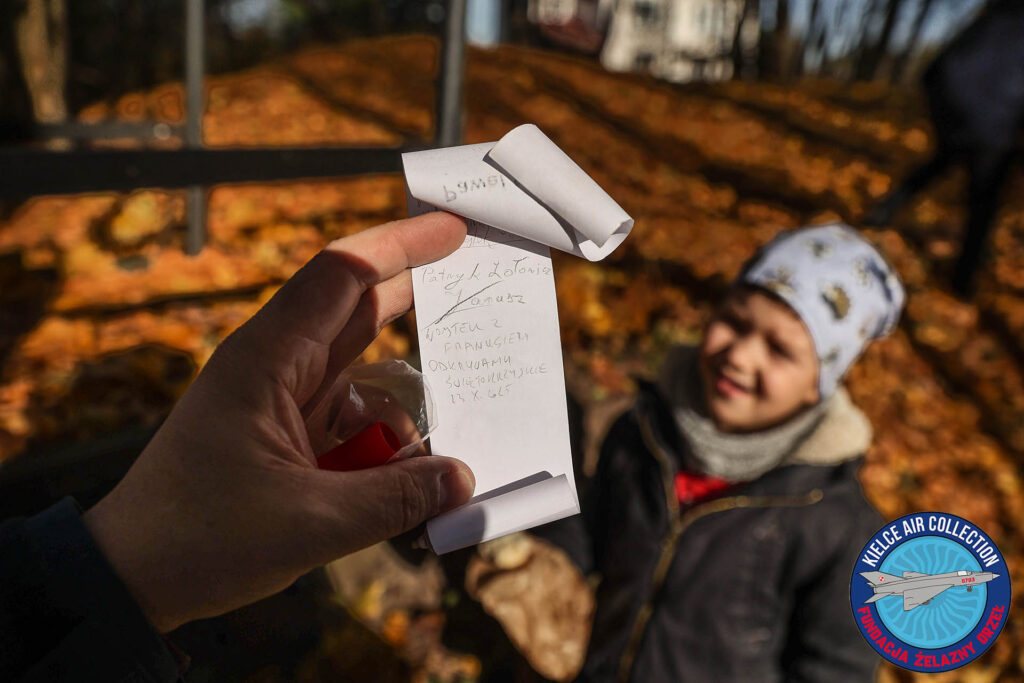 Podczas naszej wizyty coś zwróciło moją uwagę, okazało się że przy „ławie” znajduje się skrytka geocachingowa. Wpisaliśmy się z Franciszkiem. 23 października 2025 r.