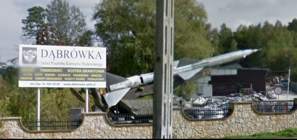 Kilkanaście lat temu, w Tumlinie niedaleko Kielc, na terenie firmy Centrum Kamienia Dąbrówka, jej ówczesny właściciel – nieżyjący już Wojciech Lesiński – zgromadził mały arsenał. Jak mówił „przedmioty związane z wojną i uzbrojeniem to jego hobby”. Przy wjeździe ustawiony był przeciwlotniczy zestaw rakietowy S-75, podobny do tego którym w 1960 r. zestrzelono amerykański samolot U2 Gary’ego Powersa w okolicach Aramilu na Uralu. W jednym z wywiadów przeprowadzonych z właścicielem w 2001 r., znalazłem informacje, że rakieta zakupiona w AMW kosztowała symboliczne 1400zł, znacznie droższa natomiast była wyrzutnia. Na Street View widoczna jest na zdjęciach w 2012 i 2013 roku, w 2019 roku już jej nie ma (najpóźniejsze zdjęcie samolotu MiG które znalazłem, pochodzi z maja 2017 r.). Pamiętam, że odwiedziłem to miejsce kiedy eksponaty były jeszcze na placu. Można było zobaczyć tam także samolot MiG-21, chyba AN-2, czołg T55 i transporter opancerzony SKOT, miały się tam też znajdować armatohaubice (informacje z wywiadu, i wspomnień choć pamięć może mnie mylić, nie odnalazłem swoich zdjęć z tej wizyty, prawdopodobnie byłem przejazdem bez aparatu, lub myślałem że będą tam „zawsze” i zdążę wrócić).