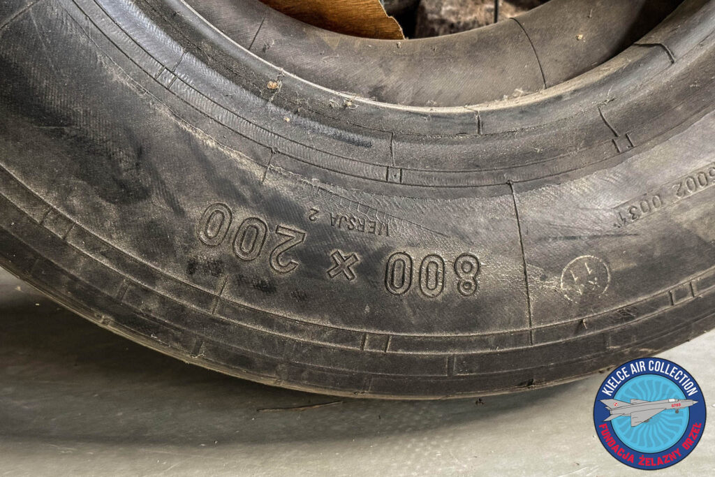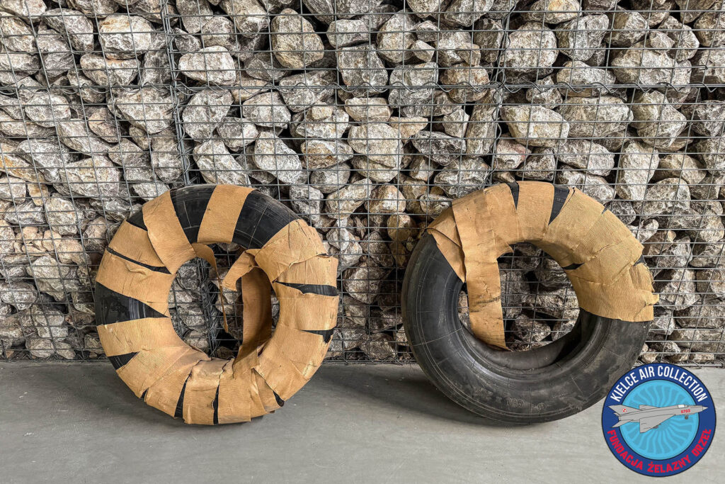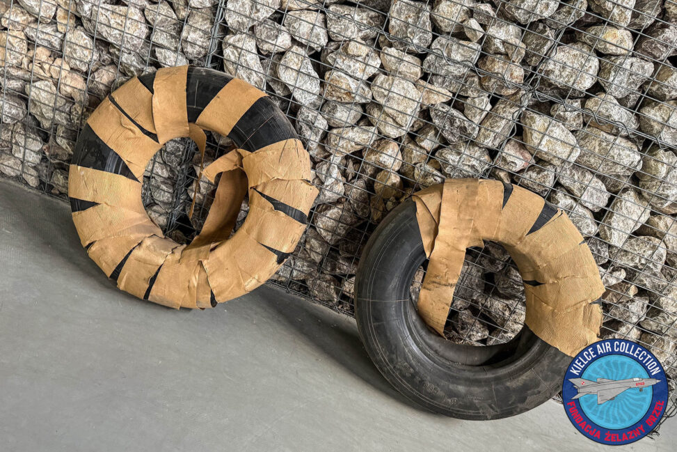Samolot MiG-21PF 0703 ustawiony na placu koło Bazy Zbożowej w Kielcach ma opony, które przez kilkadziesiąt lat były narażone na różne warunki atmosferyczne, w sumie rozpadają się. Otrzymałem więc bardzo przydatny eksponat.