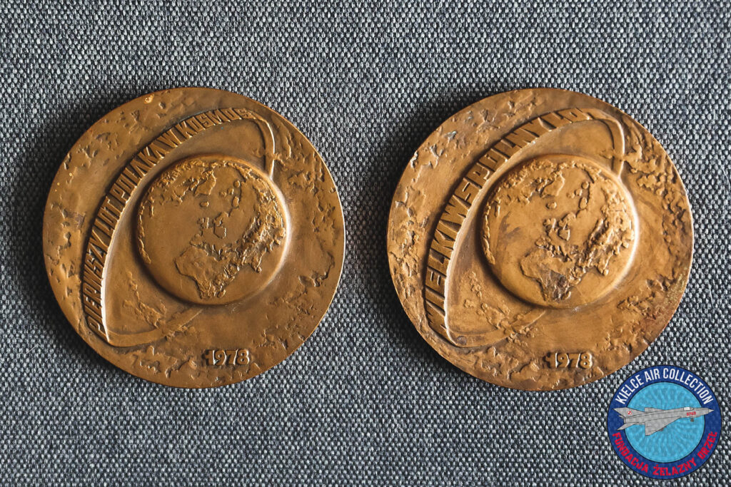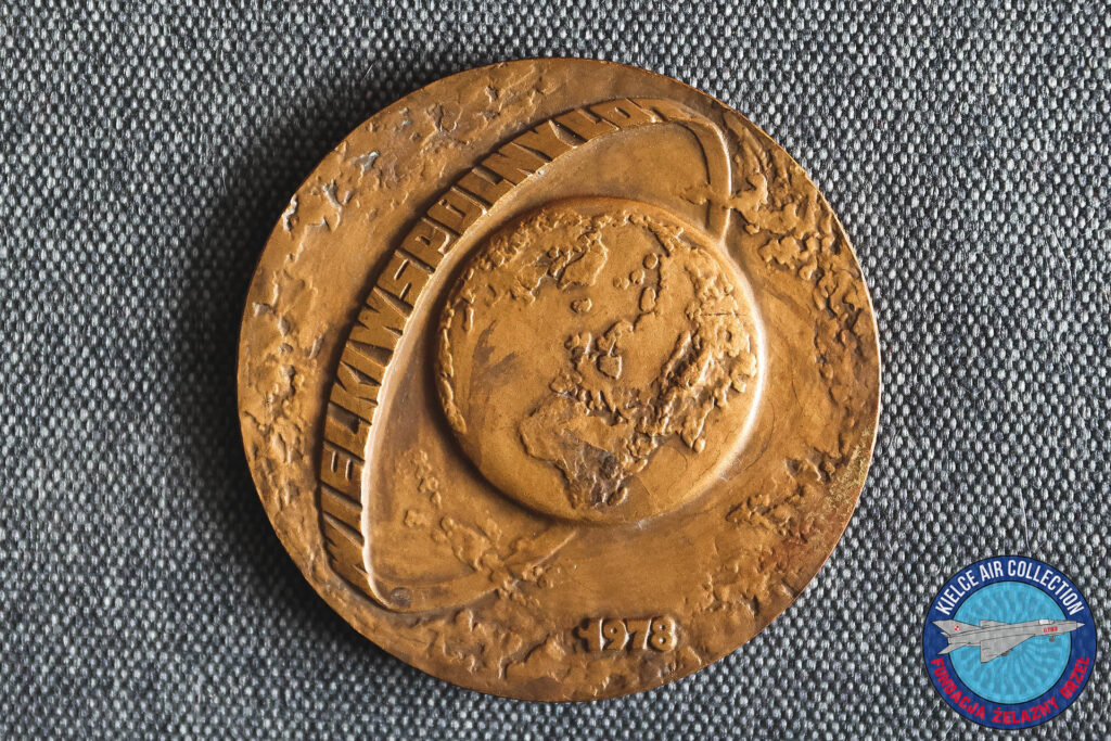 Medal upamiętniający Pierwszy Lot Polaka w Kosmos który wykonał gen. Mirosław Hermaszewski. W 1978 r. od godziny 17:27 27 czerwca do godziny 16:31 5 lipca wraz z Piotrem Klimukiem odbył lot na statku kosmicznym Sojuz 30.