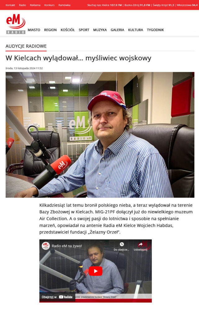 Ok godziny 10 rano byłem gościem Pawła Jańczyka na antenie Radio EM Kielce. Oczywiście rozmowa koncentrowała się na sprowadzonym ostatnio do Kielc samolocie MiG-21PF, a także planach z nim związanych. Materiał znajdziecie pod linkiem „W Kielcach wylądował… myśliwiec wojskowy„.