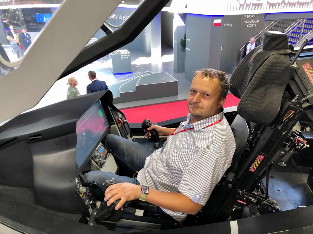 fot. Autor, w kabinie makiety samolotu Lockheed Martin F35, prezentowanego na targach MSPO 2021