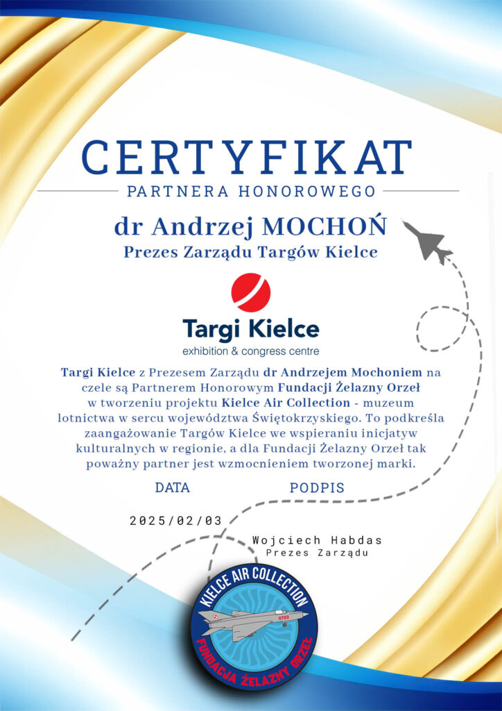 Bardzo ważnym partnerem Kielce Air Collection są TARGI KIELCE, drugi w Europie Środkowo – Wschodniej organizator targów, wystaw, konferencji i kongresów. Partnerstwo podkreśla zaangażowanie Targów Kielce we wspieraniu inicjatyw kulturalnych w regionie, a dla Fundacji Żelazny Orzeł tak poważny partner jest wzmocnieniem tworzonej marki.